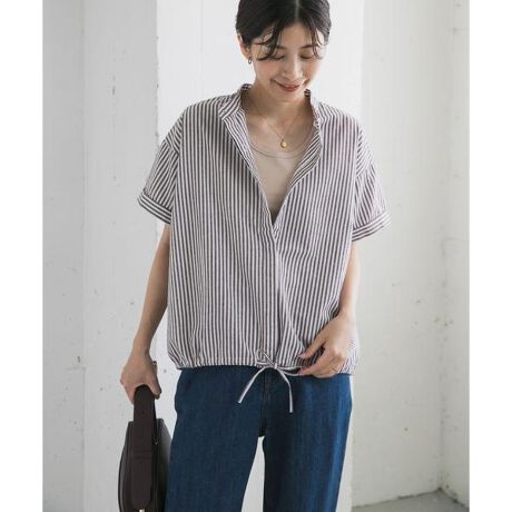 バンドカラーが首元をスッキリと見せてくれるため、程よいきちんと感をキープしつつ、ボタンを少し開ければ大人の抜け感も楽しめます。