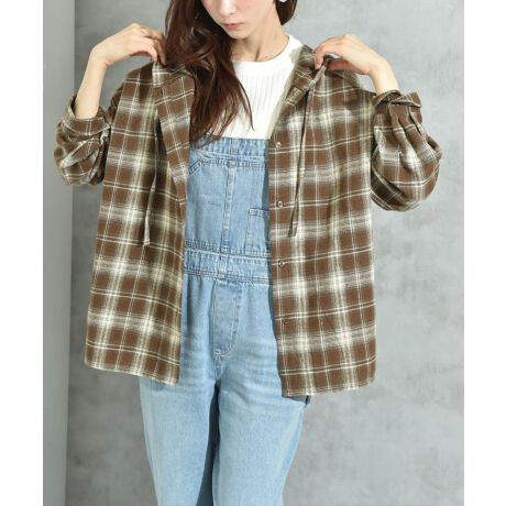 着るだけで旬なスタイルが決まるフードシャツ。アウター感覚で着まわせ、柔らかい素材を使用しているのでごわつかず女性らしく着ていただけます。ボディは程よいリラックスサイズにし、腕周りに余裕を持たせました。シャツ衿より肩の力を抜いて着れるフードが人気のポイントです。マンネリしがちなデイリーのスタイルがワンランクアップするお勧めな1枚です。