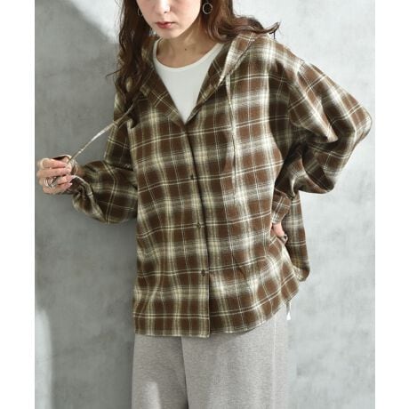 着るだけで旬なスタイルが決まるフードシャツ。アウター感覚で着まわせ、柔らかい素材を使用しているのでごわつかず女性らしく着ていただけます。ボディは程よいリラックスサイズにし、腕周りに余裕を持たせました。シャツ衿より肩の力を抜いて着れるフードが人気のポイントです。マンネリしがちなデイリーのスタイルがワンランクアップするお勧めな1枚です。