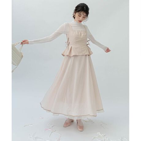 さりげないリボンデザインが魅力的なペプラムワンピース。