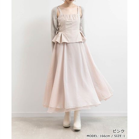 ・身頃とスカートは生地感を変えてドッキングスタイルに