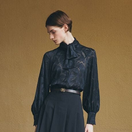 <繊細なジャガード織りが上品なラグジュアリーブラウス>