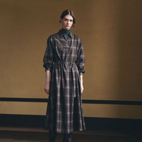 オリジナルのチェック柄とカラーリングの一着で着映えるワンピースです。