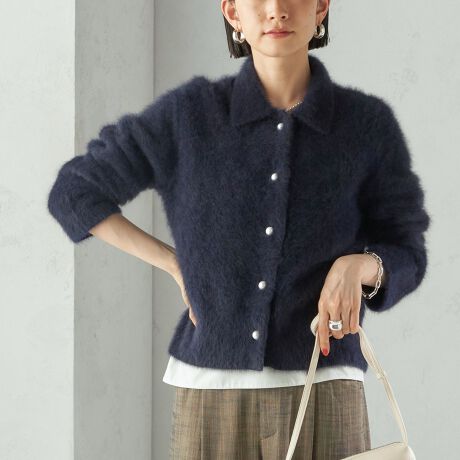 柔らかく、ふんわりとした上質なフォックス混ニットカーディガン