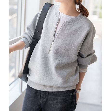 スウェット感覚で、きれいめカジュアルを楽しむハーフジップニット。