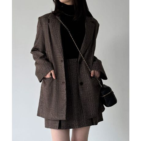 グレンチェックオーバーサイズジャケット+フレアミニスカート(インパン付き)set