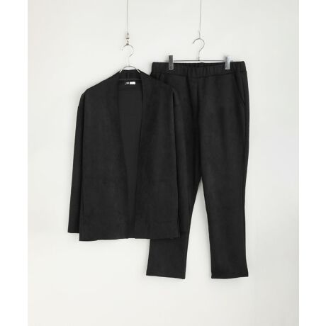 ピーチスキンポンチノーカラーカーディガン&テーパードパンツセットアップ
