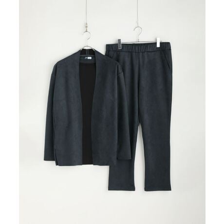 ピーチスキンポンチノーカラーカーディガン&テーパードパンツセットアップ