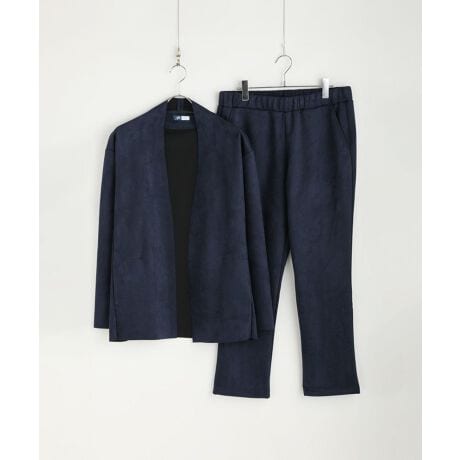 ピーチスキンポンチノーカラーカーディガン&テーパードパンツセットアップ
