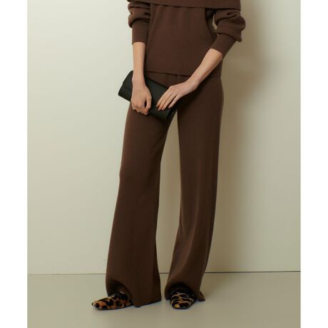 贅沢なカシミヤタッチウールでお作りしたハイカジュアルなニットパンツ。