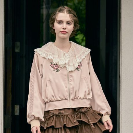 バックスタイルに施したローズ刺繍が目を惹くブルゾン。