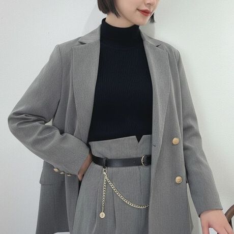 ゴールド釦をあしらったクラシカルなダブルジャケットが登場。