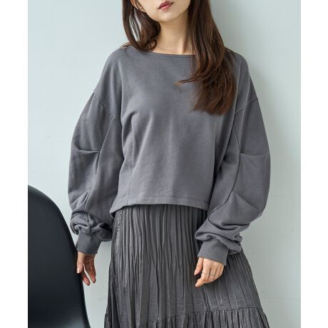 袖にタックを入れることで、シンプルなスウェットをぐっとおしゃれにアップデート!
