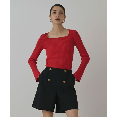 トラッドなタックスカート風に仕立てた大人なショートパンツ。 やや長めの着丈や足幅に余裕をもたせたことで幼く見えず、品よく穿いていただけるシルエットに仕上げました。シックで奥行きのあるカラーが、洗練感のあるシーズナブルな装いを楽しめるポイント。大きめのボタンをトッピングしておしゃれなアクセントにしつつ、お揃いのジャケットを合わせた時はあえて隠れるようにして、セットアップで着た時にバランス良く穿いていただけるようにしています。大人のカジュアルスタイルにスマートに溶け込む一本を、この機会にぜひ。