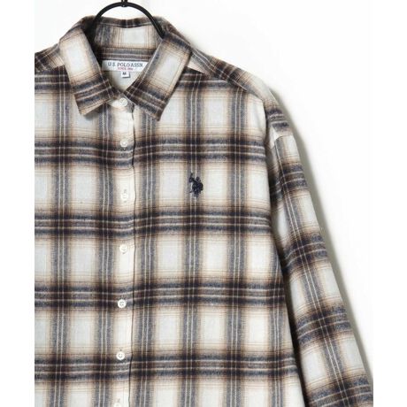 U.S. POLO ASSN./ユーエスポロアッスン Flannel Check Shirt/オーバーサイズ フランネル チェック ロゴ ワンポイント刺繍 レギュラーカラーシャツ/レディース