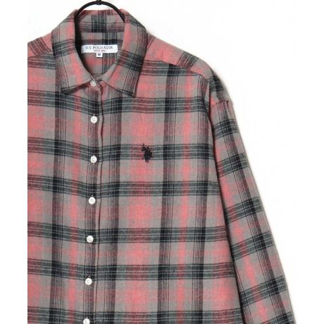 U.S. POLO ASSN./ユーエスポロアッスン Flannel Check Shirt/オーバーサイズ フランネル チェック ロゴ ワンポイント刺繍 レギュラーカラーシャツ/レディース