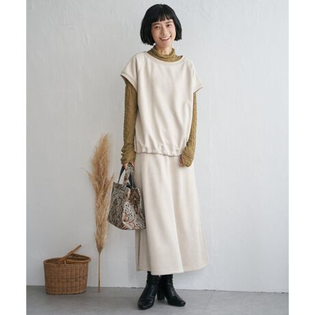 秋冬に映えるスエード調素材で仕立てたロングスカート。