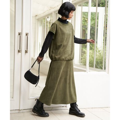 秋冬に映えるスエード調素材で仕立てたロングスカート。