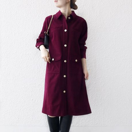 温かみのあるコーデュロイに、今年らしいミニ丈が魅力のシャツワンピース。