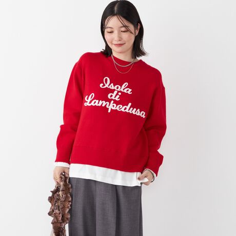 スウェット感覚で気軽に着用いただけ、大人見えするロゴニットに仕上げました。