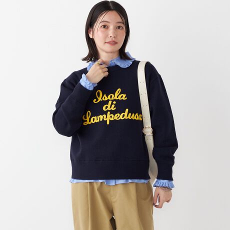 スウェット感覚で気軽に着用いただけ、大人見えするロゴニットに仕上げました。