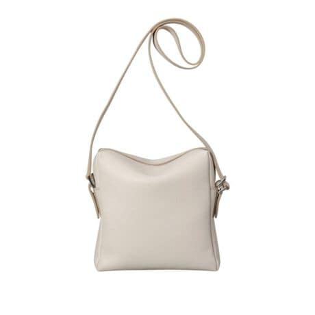 すっきりとした正方形のフォルムが印象的な薄マチ仕様のショルダーバッグ。