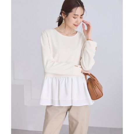 ・カットソー部分はストレッチが効いた快適な素材、布帛部分はやわらかく落ち感のある軽やかな生地感。