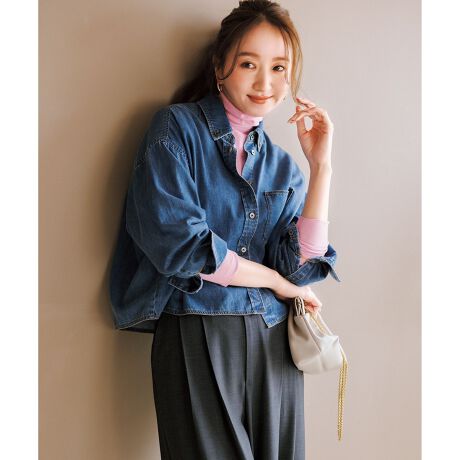 軽い着心地が魅力のクロップドデニムシャツ。ボタンダウンディティールを取り入れ、トラッドな印象に仕上げました。
