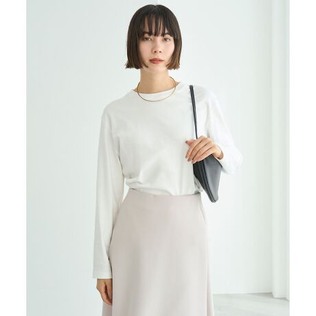 ■デザイン1枚でもレイヤードでも活躍する、着回し力抜群の万能Tシャツ。シンプルながらボディラインを拾わない程よいサイズ感にこだわり、1枚でこなれた印象に。ヘムラインは前後差のない直線ラインですっきりと見せます。今年らしいレイヤードスタイルにもおすすめです。今シーズンはベーシックなオフホワイトに加え、細ボーダーやブルーのアクセント入りのWボーダーをご用意いたしました。