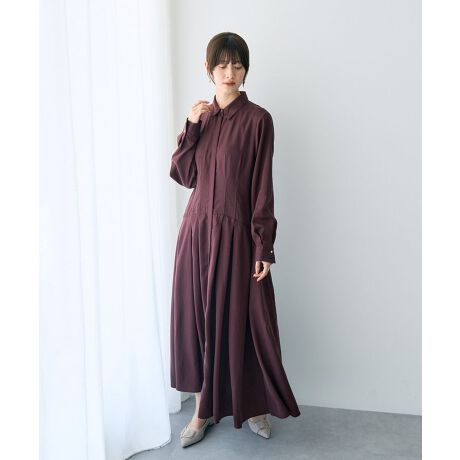 フロントタックとバックギャザーがメリハリのあるフィット&フレアシルエットを演出します。