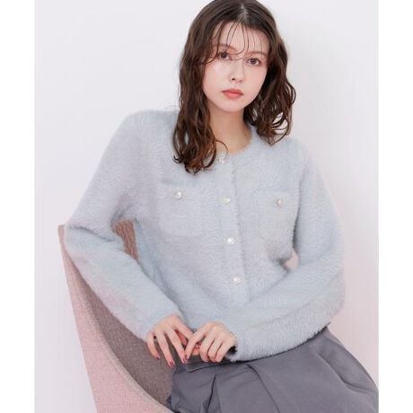 短毛のふわふわシャギー糸と小さなスパンコールとラメ糸で編まれた、華やかなニットジャケット。同系色の上品な光沢なので派手になりすぎず、オフィスからデイリーのお出かけシーンまでおすすめ。ニットジャケットは羽織りやすく、軽くてシワになりにくいので持ち運びにも便利です。※撮影時照明の関係により、色味が違って見える場合がございます。またパソコン・スマートフォンなどの環境により、若干製品と画像のカラーが異なる場合もございます。予めご了承ください。商品の色味は、商品単品画像をご参照下さい。※商品画像はサンプルのため、色味やサイズ等の仕様に変更がある場合がございますので、予めご了承ください。