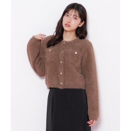 短毛のふわふわシャギー糸と小さなスパンコールとラメ糸で編まれた、華やかなニットジャケット。同系色の上品な光沢なので派手になりすぎず、オフィスからデイリーのお出かけシーンまでおすすめ。ニットジャケットは羽織りやすく、軽くてシワになりにくいので持ち運びにも便利です。※撮影時照明の関係により、色味が違って見える場合がございます。またパソコン・スマートフォンなどの環境により、若干製品と画像のカラーが異なる場合もございます。予めご了承ください。商品の色味は、商品単品画像をご参照下さい。※商品画像はサンプルのため、色味やサイズ等の仕様に変更がある場合がございますので、予めご了承ください。