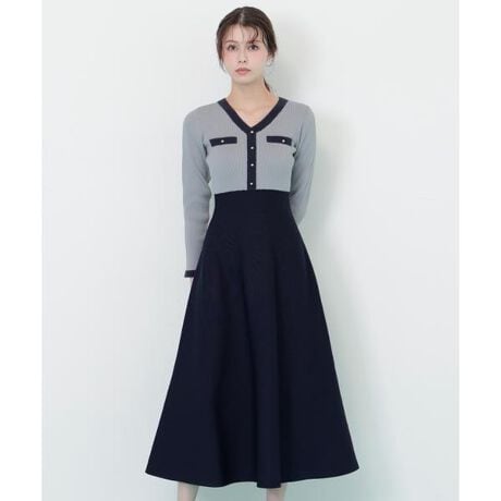 モールヤーントリミングニットワンピース