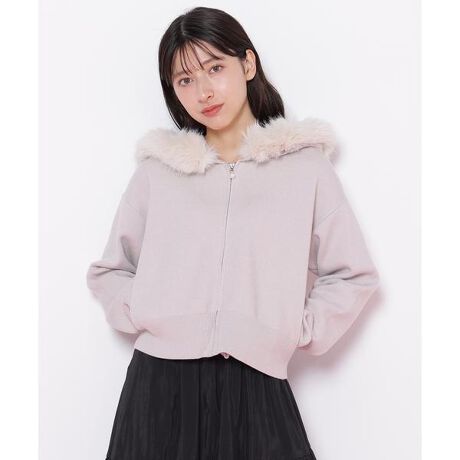 ふわふわのフェイクファーをフードに付けたニットパーカー。季節感があり、羽織るだけでコーディネートを可愛らしくアップデート。パール調の引き手ファスナーもきらっとアクセントになっています。デニムやスカートとも好相性な、冬のマストアイテムです。※撮影時照明の関係により、色味が違って見える場合がございます。またパソコン・スマートフォンなどの環境により、若干製品と画像のカラーが異なる場合もございます。予めご了承ください。商品の色味は、商品単品画像をご参照下さい。※商品画像はサンプルのため、色味やサイズ等の仕様に変更がある場合がございますので、予めご了承ください。