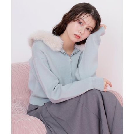 ふわふわのフェイクファーをフードに付けたニットパーカー。季節感があり、羽織るだけでコーディネートを可愛らしくアップデート。パール調の引き手ファスナーもきらっとアクセントになっています。デニムやスカートとも好相性な、冬のマストアイテムです。※撮影時照明の関係により、色味が違って見える場合がございます。またパソコン・スマートフォンなどの環境により、若干製品と画像のカラーが異なる場合もございます。予めご了承ください。商品の色味は、商品単品画像をご参照下さい。※商品画像はサンプルのため、色味やサイズ等の仕様に変更がある場合がございますので、予めご了承ください。