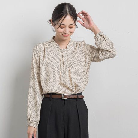 小さな幾何柄を散りばめた、上品でクラシカルな印象のプリントブラウスです。