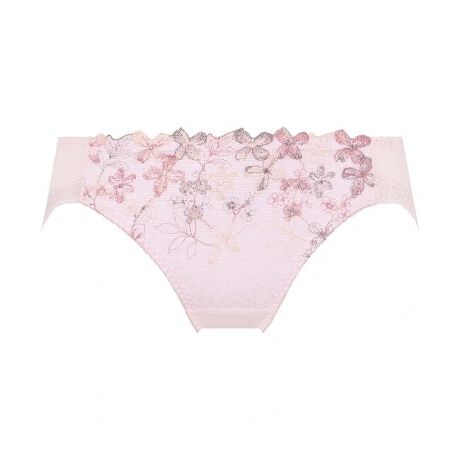 さまざまな種類の花をぎゅっと集めた柄のレースは明るく可愛らしい雰囲気です。スケッチを描くような柔らかなタッチが特徴のエンブロイダリーレース(刺しゅうレース)をフロントに使用した華やかなデザインです。
