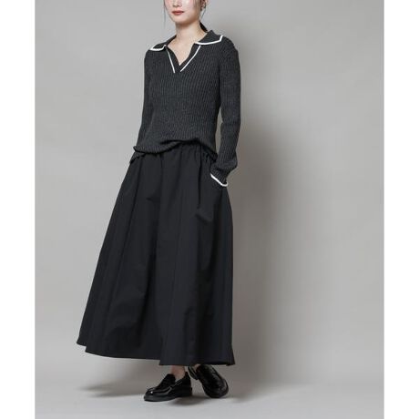 撥水加工が嬉しいロングシーズンで活躍するボリュームスカート。撥水加工を施した機能を備えており、天候を気にせずに着用できる頼れるアイテム。腰まわりに程よくフィットするデザインで、トップスをインしてももたつかず、バランスよく着こなせる一枚です。