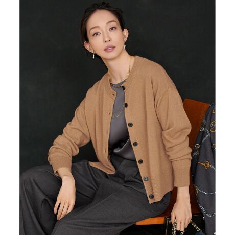 美しい光沢と贅沢な肌触りが特徴のカシミヤカーディガンです。少し太めの襟バランスでモダンな印象に仕上げました。程よいゆとりと肉厚感があるので、ボタンを留めてプルオーバーのように着たり、タートルネックなどをインナーに合わせたレイヤードスタイルもおすすめです。シンプルなデザインながらも、羽織るだけで上品で華やかな雰囲気を演出してくれる特別な一枚です。カラーは、カジュアルスタイルに映えるライトグレー(#003)、パッと目を引くオレンジ(#020)、上品な印象のベージュ(#033)、やわらかな雰囲気のキャメル(#034)、元気で明るいイエロー(#040)、洗練された雰囲気のブルー(#070)、さわやかなスカイブルー(#072)の7色と豊富なラインナップです。