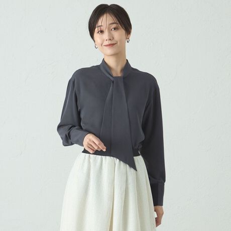 オンシーンにもカジュアルシーンにも活躍するボウタイブラウス。