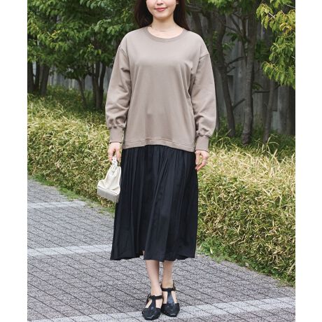 異素材を組み合わせた、1枚で着映えするドッキングワンピース。
