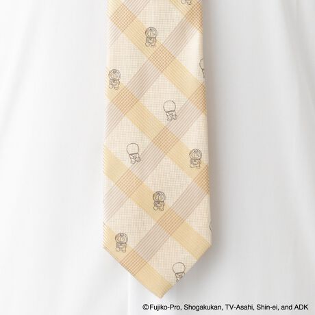 シャドーチェックにアウトラインのドラえもんを組み合わせたネクタイです。ドラえもんはお散歩中でしょうか?シンプルで同系色にまとめたチェック柄は合わせやすく、ギフトにもお勧めです。
