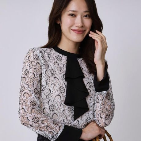 繊細なフラワーレースを使用したブラウス。