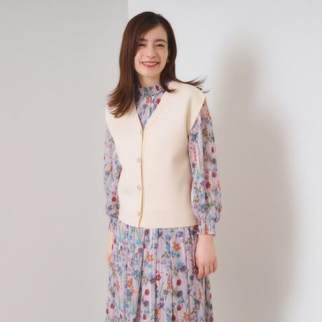秋口はブラウスやTシャツとのレイヤードで季節感のあるスタイルに。