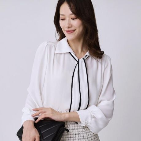 ウイングカラーが新鮮なエレガントなブラウス。