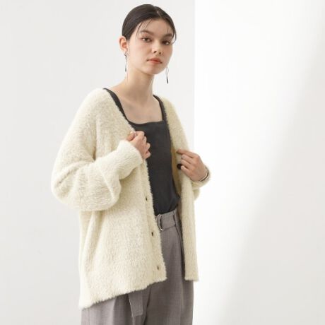 柔らかくしなやかなフェザーニットを使用したVネックカーディガンは、軽やかな素材感が魅力です。