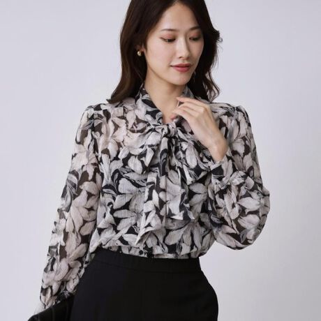 きれいで華やかなムードが漂うフェミニン顔のブラウスです。