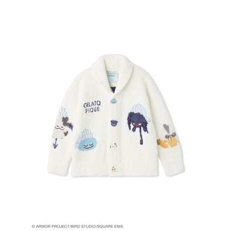 「ドラゴンクエスト」シリーズのモンスターたちが眠っている姿がかわいい、キッズサイズのカウチンが登場。フロントにスライムとドラキー、袖にはももんじゃとモーモン、背中には集合アートとブランドロゴをジャガードで表現しました。モンスターたちのおやすみ姿をデザインしたオリジナルボタンもポイント。ちいさなメダルもさりげなく忍ばせました。同シリーズのカットソーと合わせたコーディネートがおすすめです。トータルコーディネートで冒険気分をお楽しみください。