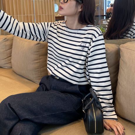 ・カジュアルになりすぎず、きれいめスタイルにもマッチするボーダーロンT