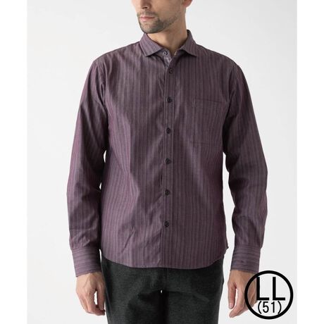 表面はシンプルな無地感覚ながら、裏面にはストライプ柄がさりげなく施されていて、さりげないアクセントが他のシャツにはない魅力を引き立てます。